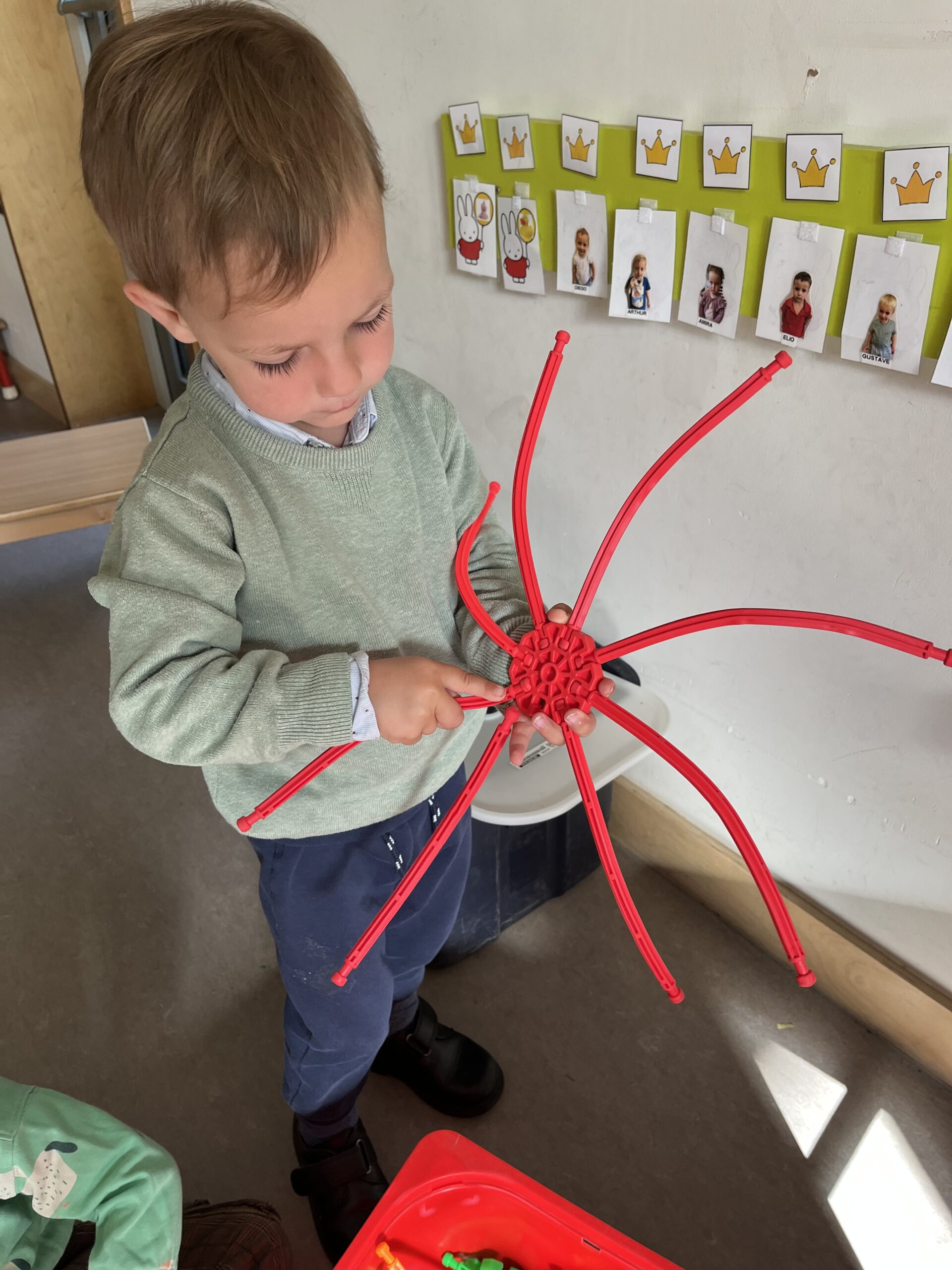 In de poppenhoek werden er bloemen gegeven aan de mama’s en maakten we ons mooi. We mochten hartjes zoeken in de ontdekbak en regen een mooie ketting voor onze mama’s. We werkten ook hard aan onze cadeau’tjes voor onze mama’s.